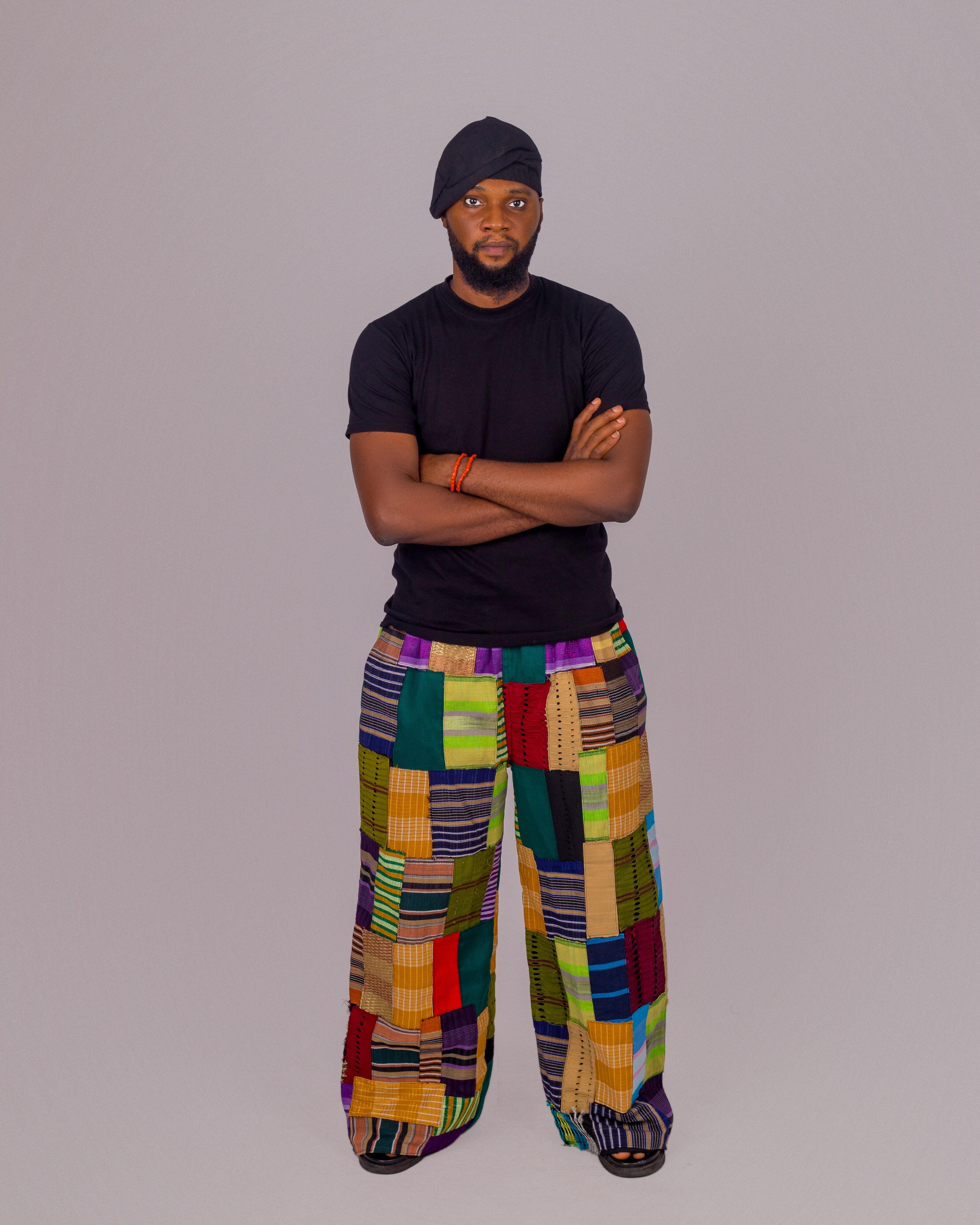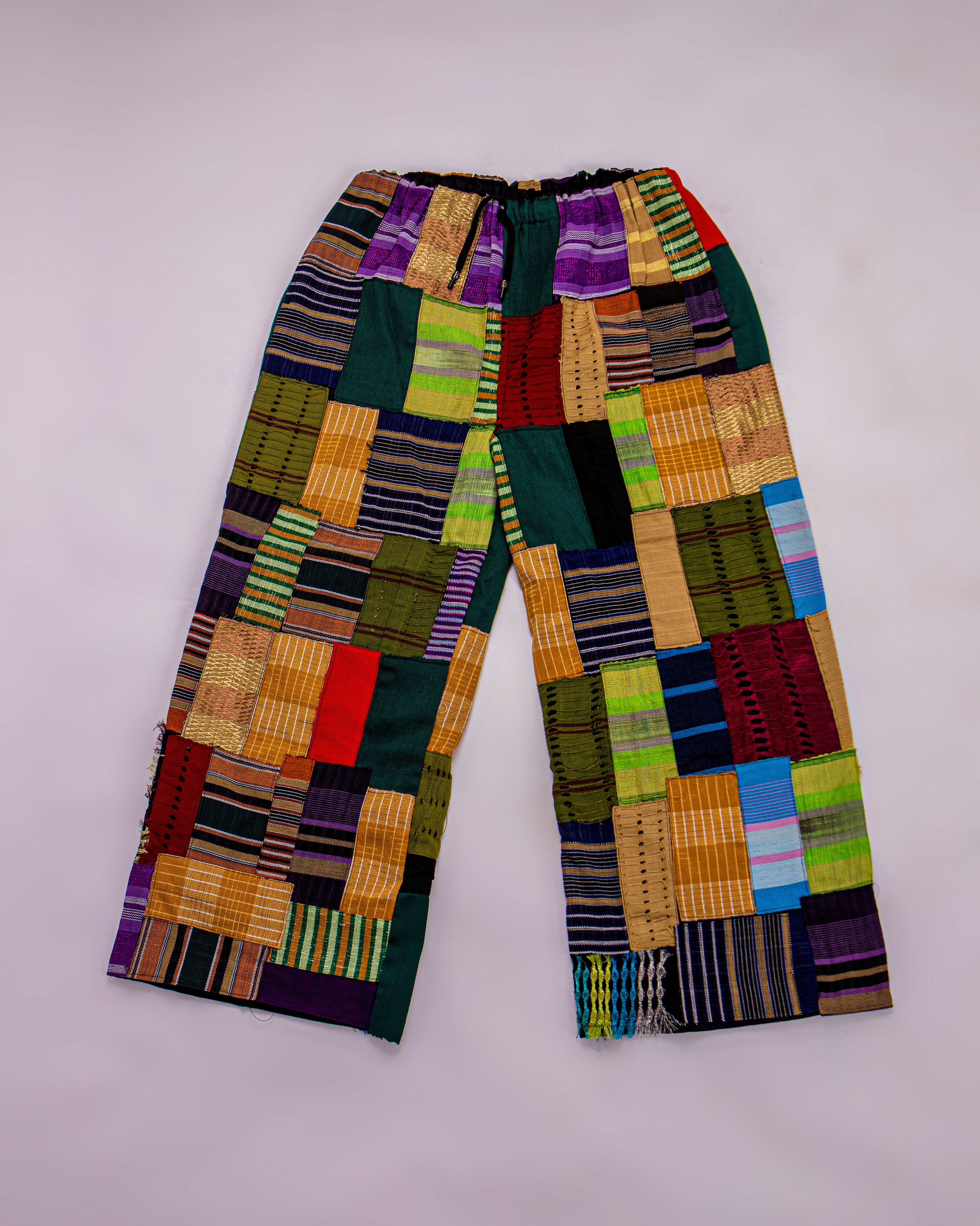 Neatly joined panels of multicoloured aṣọ òkè come together in Alaṣọ Ìrẹ́, a trouser that embodies elegance, abundance, and pleasant living. Rooted in the Yorùbá idea of ire (good fortune and positivity), this piece symbolizes wealth, class, brightness, and all things favorable. Refined yet bold, it is a celebration of beauty, dignity, and the joy of wearing what is good.